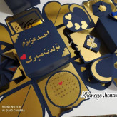 جعبه سوپرایز دولایه سرمه ای طلایی.